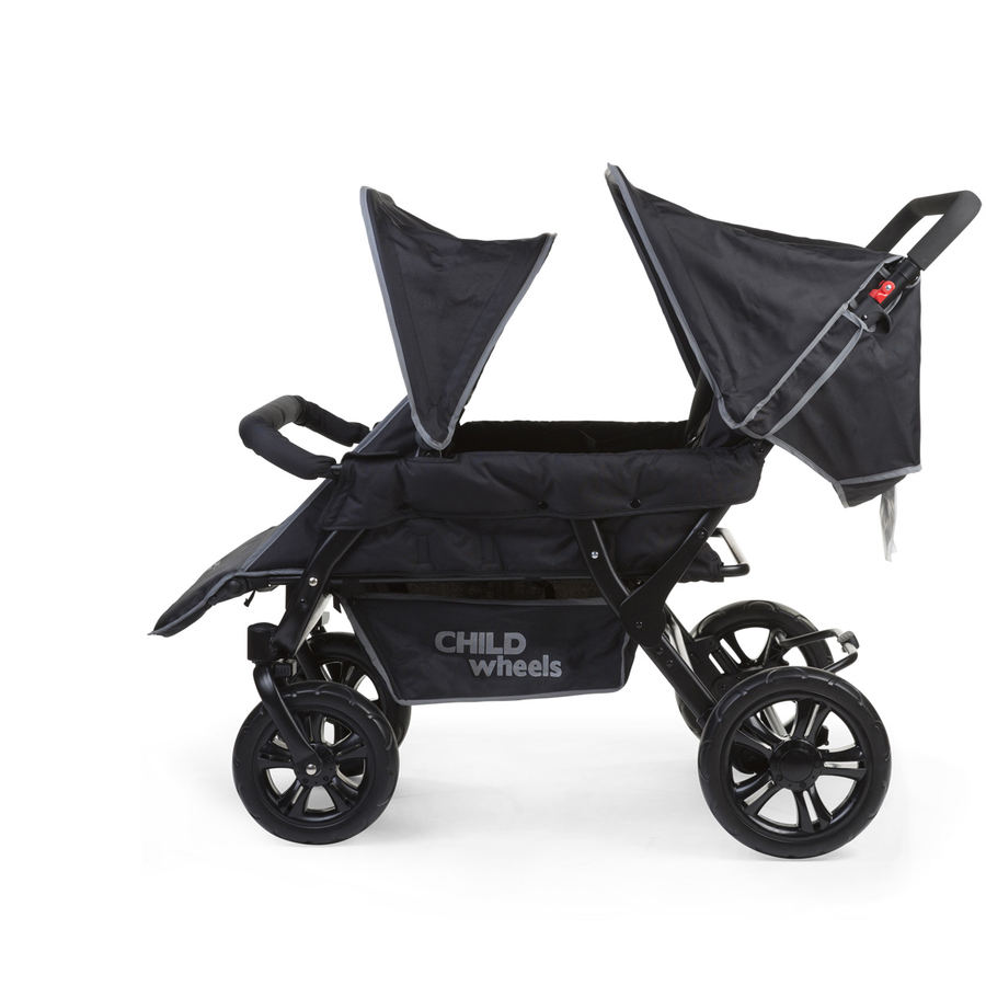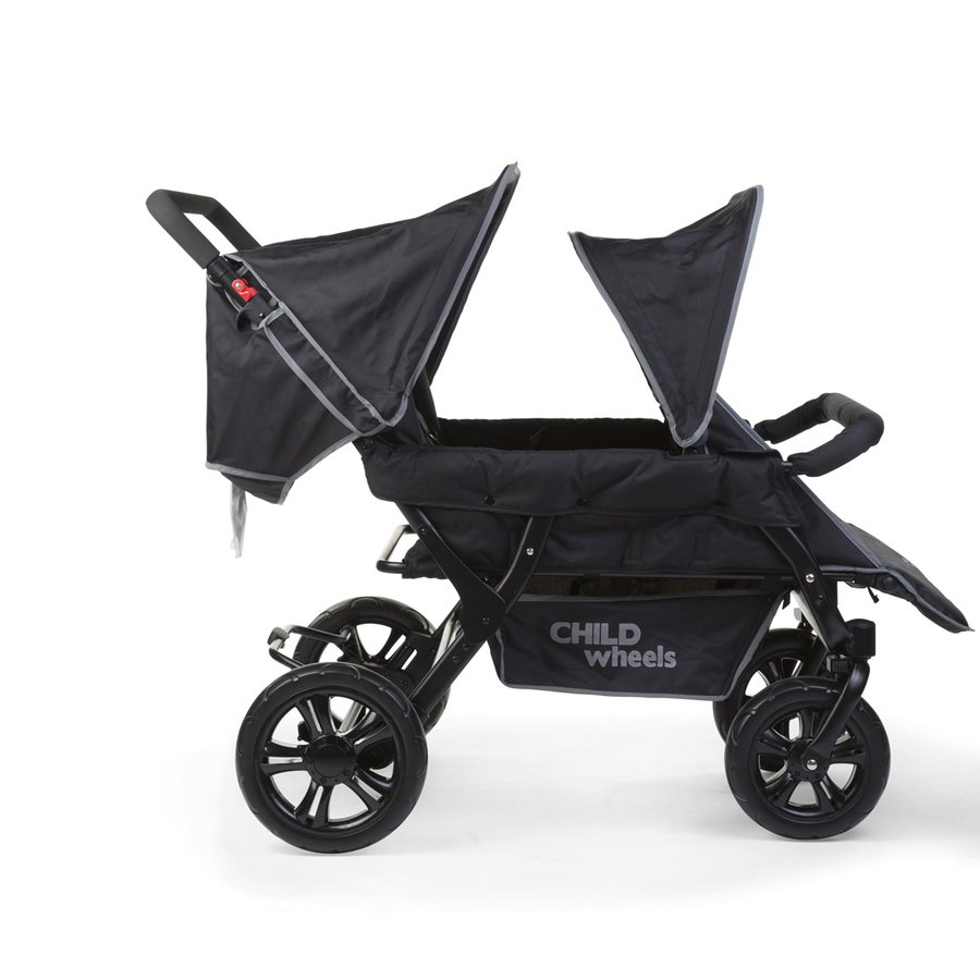 Il passeggino Two by Two è perfetto per trasportare fino a quattro bambini dai sei mesi fino a 15 kg di peso. Si tratta di un modello base, ancora più leggero dei passeggini quadrigemellari sul mercato. Inoltre, le ruote piroettanti montate sul lato anteriore rendono il passeggino più facile da utilizzare. La grandezza delle ruote garantisce la massima stabilità. Un tettuccio parasole integrato su ogni fila di sedili protegge i bambini dal vento e dal sole, mentre una copertura antipioggia inclusa mantiene il passeggino asciutto anche quando piove. Infine, il passeggino Two by Two può essere ripiegato in un batter d'occhio, per essere trasportato facilmente in macchina. Dettagli del prodotto: Quattro posti a sedere, ciascuno con cintura di sicurezza integrata a 5 punti Ruote piroettanti nella parte anteriore Elementi riflettenti per la massima sicurezza anche con il buio Protezione solare per ogni sedile Un grande cestino per riporre gli acquisti o gli accessori Chiusura semplice Dettagli tecnici: Dimensioni chiuso (lunghezza x largezza x altezza): 84 x 135 x 30 cm Dimensioni aperto (lunghezza x largezza x altezza): 110 x 85 x 105 cm Materiale: Telaio in acciaio - Tedelon trim EN-Norm: EN 1888-1:2018 Cura: Pulire con un panno umido e asciugare immediatamente. Consiglio: per spingere il passeggino su rampe o marciapiedi sono consigliabili due persone