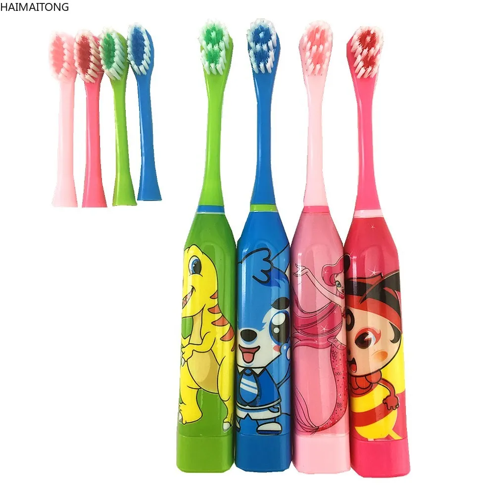 1set Children Cartoon Pattern Acoustic Wave Electric Toothbrush Kids Home Cute Soft Hair Electric Teeth Brush Double-sided Clean