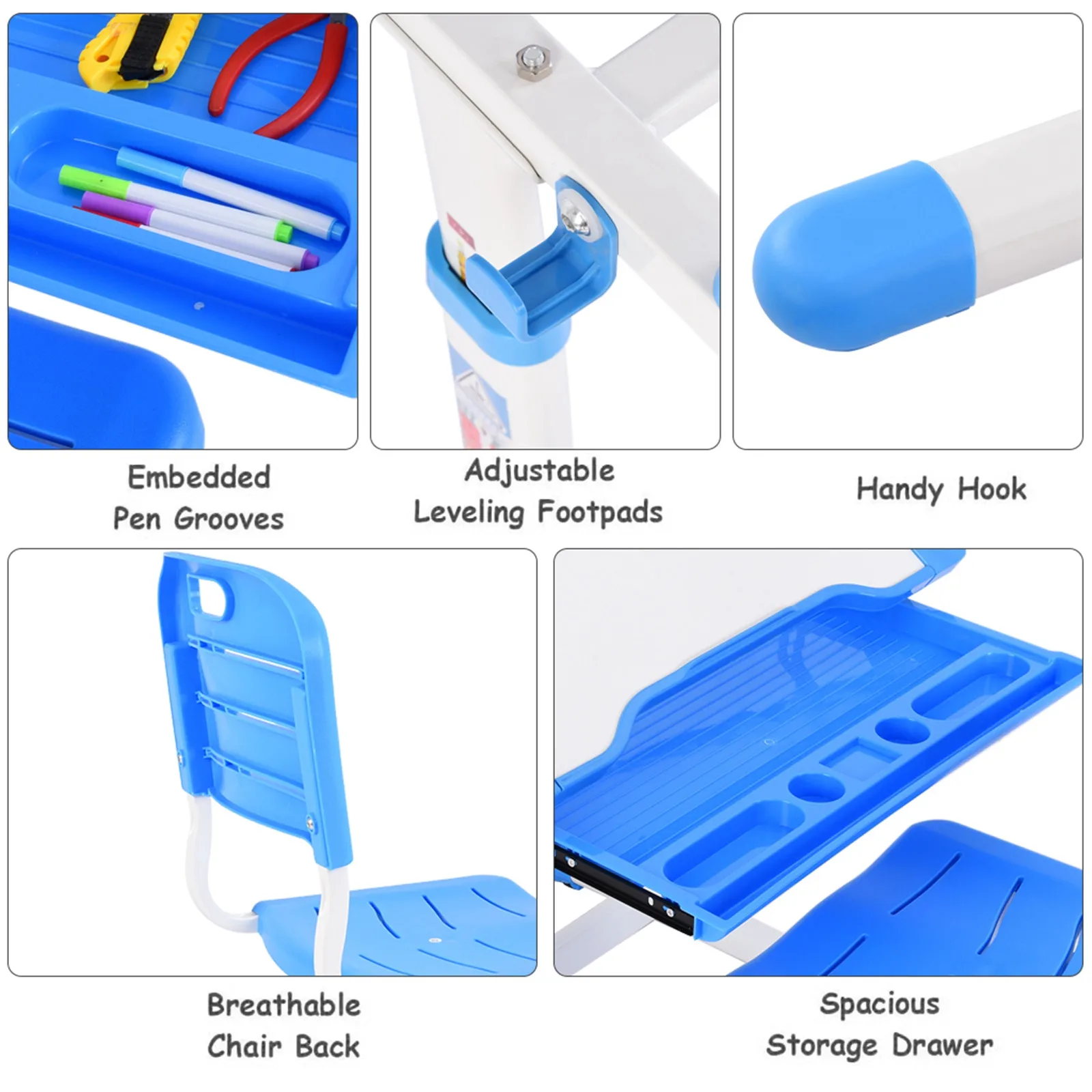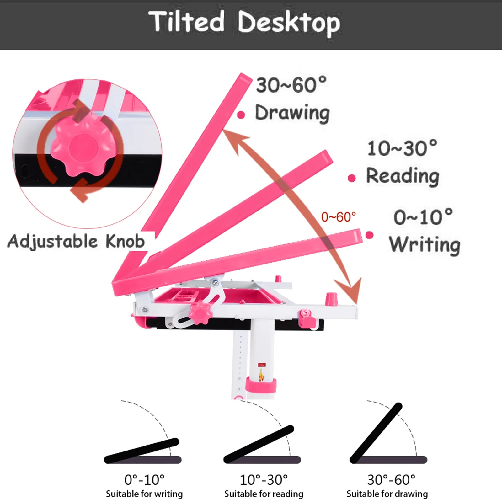 Children Desk Height Adjustable Study Kid Desk And Chair Set Pull Out Drawer Tilted Desktop Student Writing Table Combination E3