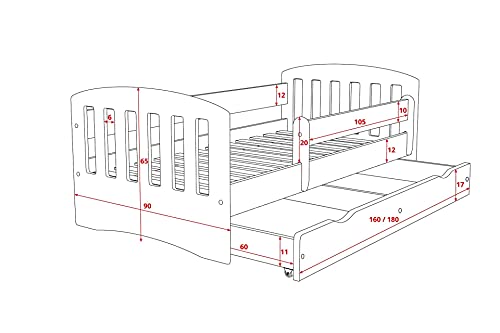 Children's Beds Home Letto Singolo Classic 1 - per Bambini Bambini Junior con cassetti e Materasso in Schiuma da 8 cm Inclusi (Blu, 140x80)