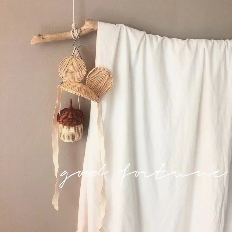 Children cute Pinecone crossbody bag children creative hair Woven messenger bag Handmade rattan straw bag