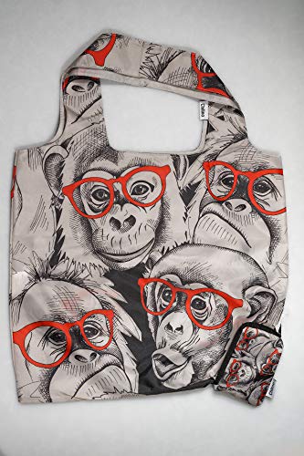 Chilino Shopping bag pieghevole, grande e stabile, ecologica, 100% poliestere, gorilla, grigio, 47 x 41 cm