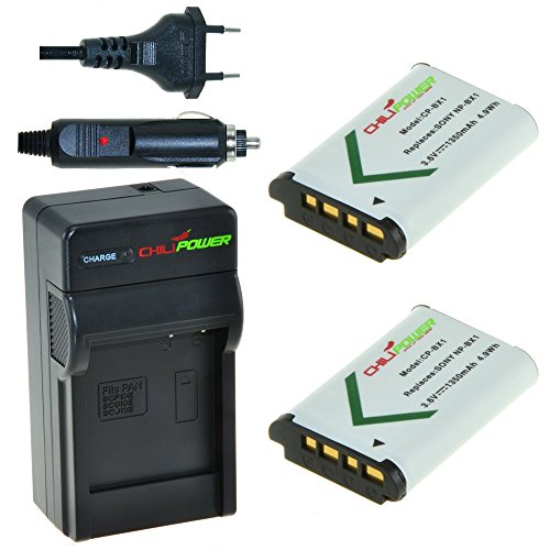 ChiliPower NP-BX1 Kit: 2 batterie + caricatore per Sony Cyber-shot DSC-HX50V, DSC-HX300, DSC-RX1, DSC-RX1R, DSC-RX100, DSC-RX100 II, DSC-WX300, HDR-AS10, HDR-AS15, HDR-AS30V, HDR-MV1