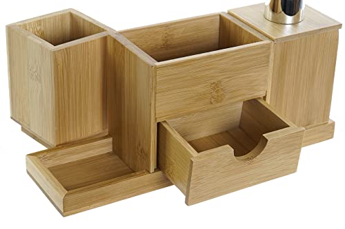 Realizzato in legno di BAMBU: tutti i pezzi del set accessori lavabo sono realizzati in legno naturale di bambù, dando all'insieme un tocco etnico e di raffinatezza