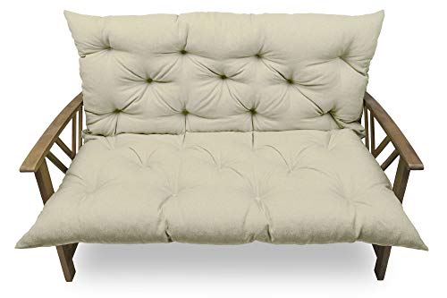 Chilly pilley Cuscino Trapuntato Per La Panca Per Lo Dondolo In Due Parti Cuscino Per Mobilli Da Giardino Con Schienale Con Lacci Ampia Scelta Delle Dimensioni E Di Colori (110x50x50, Crema)