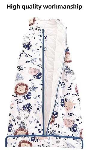 Chilsuessy Baby - Sacco nanna per tutte le stagioni, 2,5 Tog, senza maniche, con lunghezza regolabile, in cotone naturale, con zebra, leone, 110 cm, altezza 100-120 cm