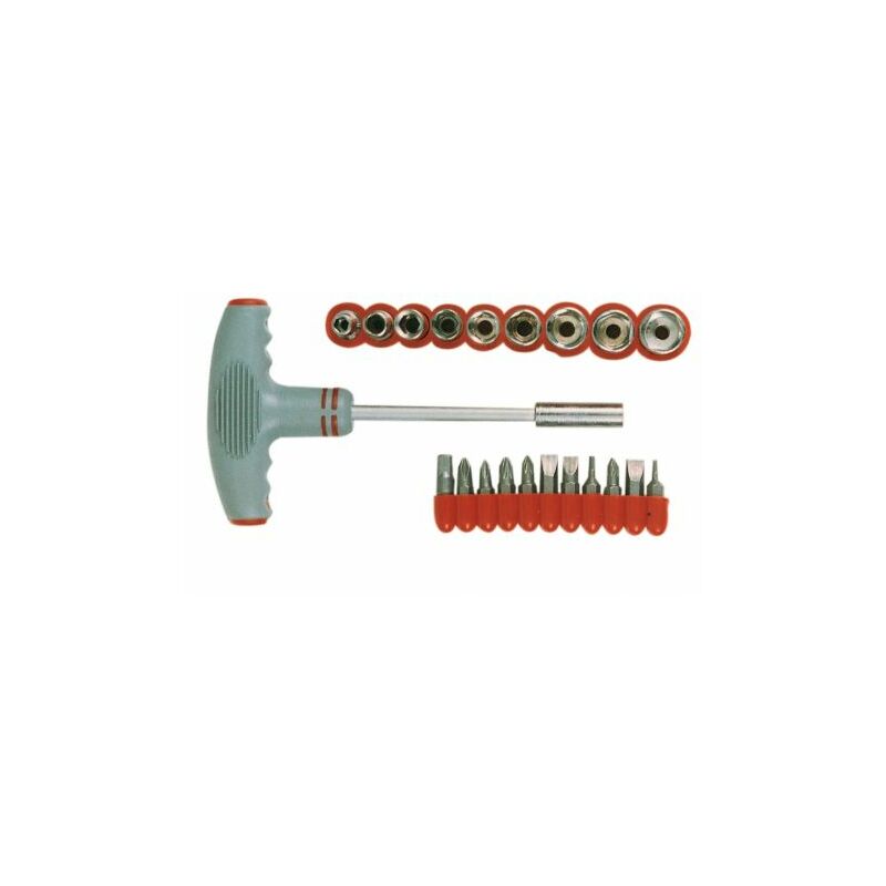 Composto da: - 9 bussole (ø 4÷12 mm) - 11 inserti - 1 impugnatura a T