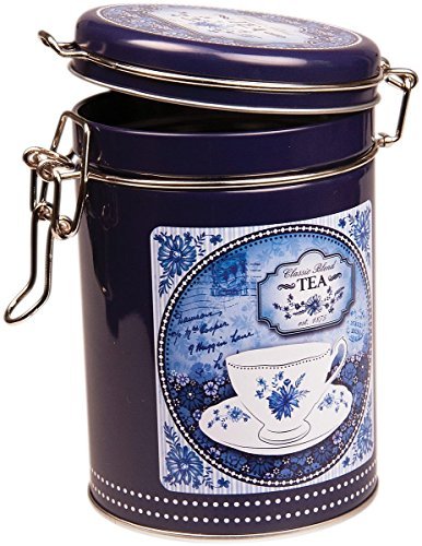 Buzz China Blue - Classic Blend Retro Vintage Style ROUND Coffee Tin/Tea Caddy/Kitchen Storage Tin/Canister - Clip Lid - Blue & White by