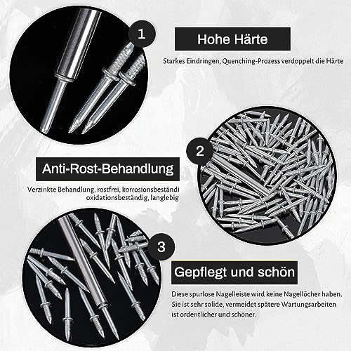 【Materiali di alta qualità】 Il chiodo senza saldatura con filettatura a presa è realizzato in metallo, vite senza saldatura e la superficie della filettatura è completa e liscia. UnghieLa superficie è zincata, può prevenire efficacemente la ruggine dei chiodi e soddisfare le tue esigenze di utilizzo a lungo termine. Le viti di sicurezza sono realizzate in materiale duro, molto resistenti, mantengono la loro forma e non si piegano facilmente durante l'uso.