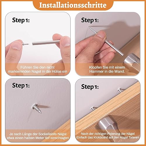 【Viti di sicurezza facili da installare】 Chiodi Prestare attenzione alla direzione della testa lunga e inchiodarla al muro. Quindi martellalo nel muro con un martello e fissa un chiodo in base alla lunghezza della linea di base di circa mezzo metro. Dopo aver fissato il chiodo a doppia testa, il battiscopa può essere fissato al chiodo.