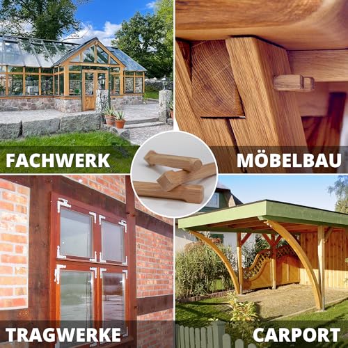 Prezzo per set da 10 pezzi, 10 chiodi in legno rovere - smussati, Vantaggi del chiodo:, materiale simile caratteristiche come i componenti non corrosione - Protezione N.A. chimiche, comportamento in caso di incendio conveniente, collegamento - Funzione estetica +, effetto idrorepellente in chimicamente riparo aggressivo (sale), installazione materiale ecologico