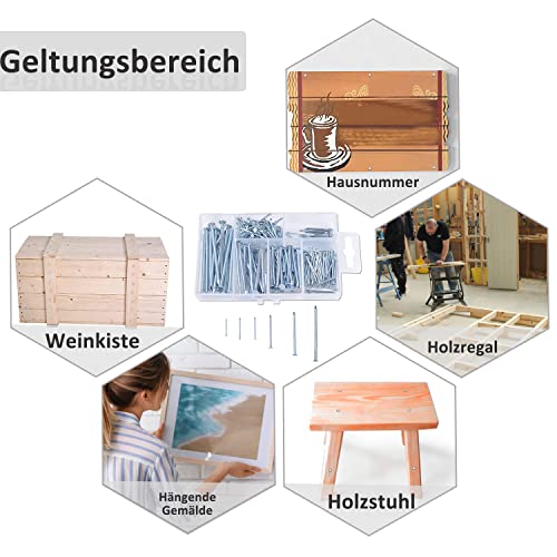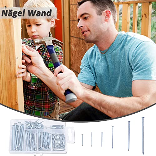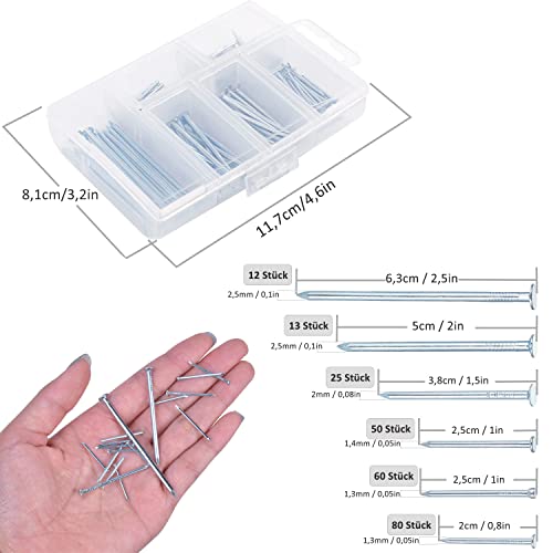 560 chiodi da parete, chiodi in acciaio con scatola di plastica, chiodi a testa svasata per appendere immagini e woking in legno, 6 misure