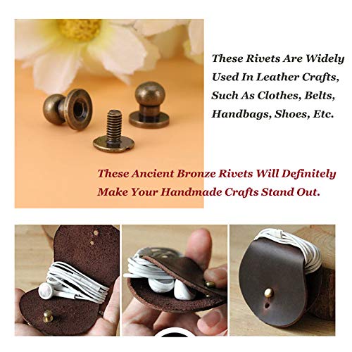 Chiodi rivetti vite in bronzo 100 pezzi 4,6x7,9x8,5mm Rivetti vite per decorazione in pelle bottoni rivetti solidi Kit rivetti per cintura in metallo Rivetto per unghie per tracolla Portafoglio Borsa