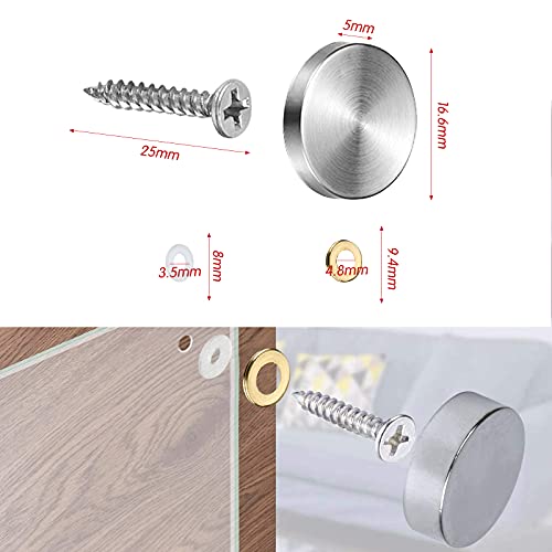 Chiodi Specchio, 16 Pezzi 16mm Viti da Specchio con Coperchio in Acciaio Inox per Fissaggio Specchietti e Vetro