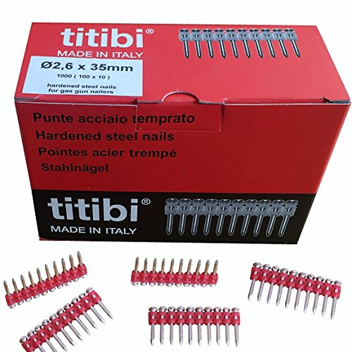 N.1000 CHIODI STECCATI PER CHIODATRICI: Spit Pulsa 800 / 700P / 700E - Pulsa 1000 / TF - Pulsa 40 P/E- Titibi Prima - Powers track It C3 / C4 - Bea CN60 / CN40 - Wurth DIGA CS1 (Ø 2,6 x 30 mm)