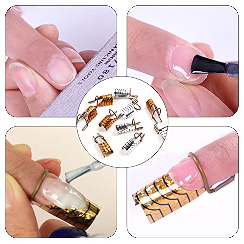 Chiodo Guida Estensione Alluminio, 20 Pz Forme Guida L'Estensione Unghie, Guida L'Estensione Forme Chiodi, Riutilizzabili Nail Art Form Guide, Regolabile, per Salone Bellezza Domestico, D'Oro, Argento