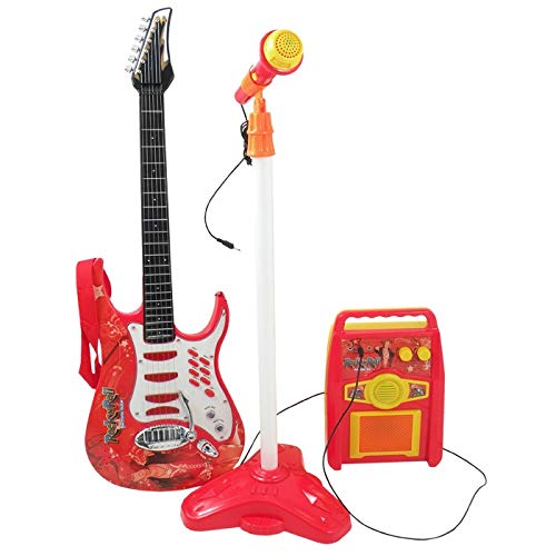 Il Pacchetto Comprende: * Chitarra elettrica. * Amplificatore. * Microfono con il basamento. * Chitarra elettrica dispone di 6 corde di metallo, sensibili al tatto.