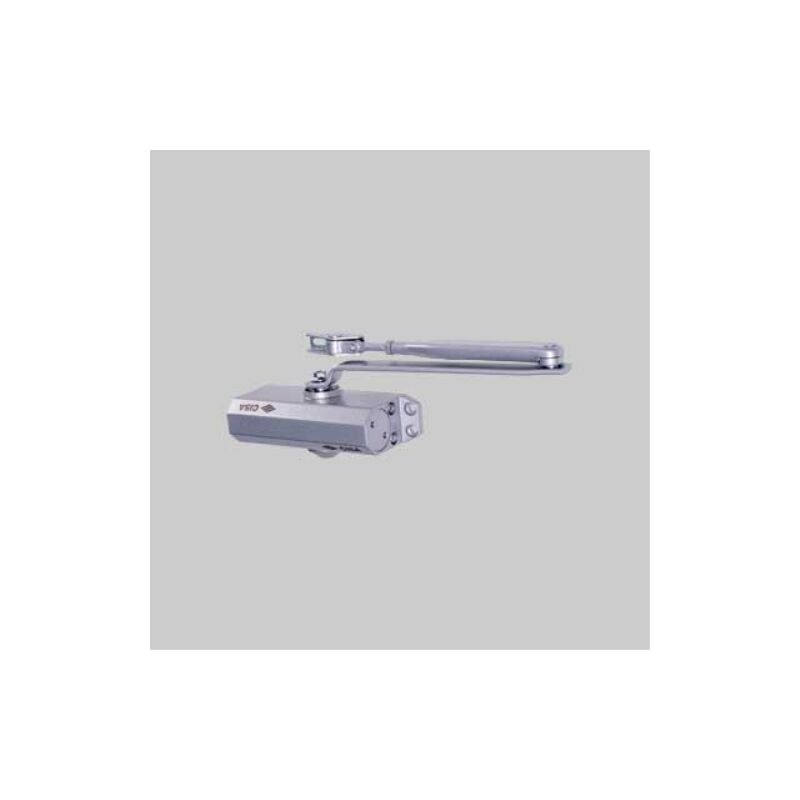 Ideale per controllare in modo efficace, affidabile e a costi vantaggiosi la chiusura della porta. Meccanismo a pignone e cremagliera. Corpo in lega di alluminio. Braccetto in acciaio. Speciale molla in acciaio a bagno d'olio. Regolazione della velocit... di chiusura tramite la valvola 1. Regolazione del corpo finale tramite valvola 2. Forza di chiusura regolabile da EN 2 a 4 variando la posizione di montaggio. Adatto per porte fino a 1100 mm destre o sinistre, a tirare o a spingere. Chiudiporta 'aerei 604' cisa senza arresto col. argento CISA Serrature cisa