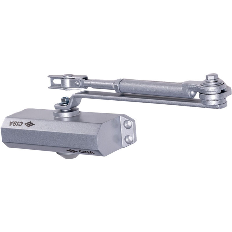 Chiudiporta aereo 'serie 604' 'c60460' senza fermo - col.nero Corpo in lega di alluminio. Meccanismo a pignone e cremagliera. Braccetto in acciaio, molla speciale in acciaio a bagno d'olio. Valvola di regolazione della velocita' di chiusura e valvola di regolazione del colpo finale. Per porte destre o sinistre, a tirare o a spingere con max 1100 mm di larghezza. Forza di chiusura regolabile da EN 2 a EN 4. 'C60460' senza fermo - col.nero Categoria dell'articolo: Ferramenta - Maniglioni antipanico e chiudiporta