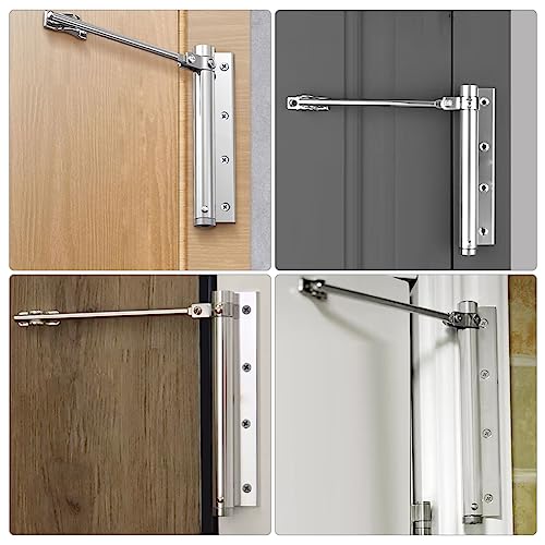 Facile da Installare: L'installazione del chiudiporta a molla leggera è molto semplice, basta fissare il chiudiporta nella posizione corrispondente con le viti. Tensione regolabile caricata a molla, è possibile regolare la tensione caricata a molla regolando la vite del chiudiporta per far chiudere la porta lentamente o velocemente.