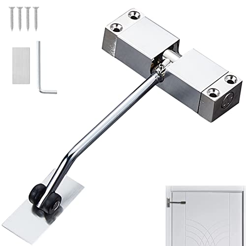 Chiudiporta Automatico a Molla, Chiudiporta Automatico,Chiudiporta Regolabile a Molla con Asta di Regolazione,Adatto per Giardino, Camera Da Letto, Ufficio, Bagno (Argento)