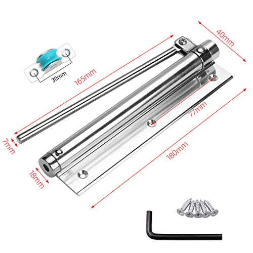 Chiudiporta per impieghi leggeri Chiudiporta automatico Clos Chiudiporta a molla in lega di alluminio Design silenzioso a puleggia Regolabile automaticamente per porte interne leggere (Argento)