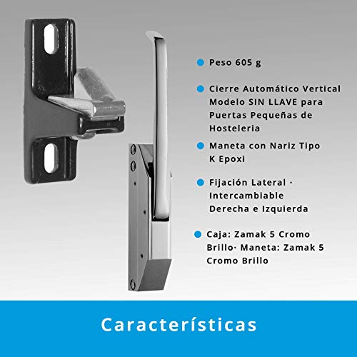 Chiusura Automatica Verticale, Modello SENZA chiave per Porte piccole di Istituti Alberghieri. | Maniglia Tipo K Epoxi · Fissazione Laterale.