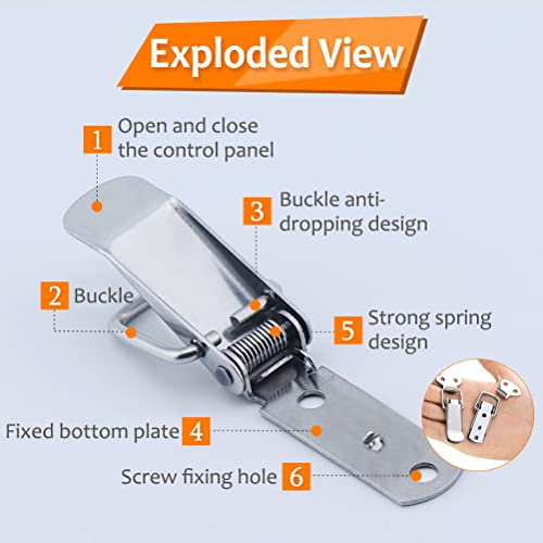 【Bello e Durevole】 Il chiusura a leva acciaio inox è trattata con cura, molto liscia e non graffiata. La molla interna è forte e non facile da rompere. La dimensione è comoda da impugnare, comoda per l'installazione e l'applicazione.