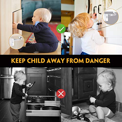 Sicuro per il bambino - La serratura per bambini in materiale ABS di alta qualità, che possiede alcuni pregi come residui resistenti, leggeri, ecologici e non nocivi. Doppia protezione per il tuo bambino.