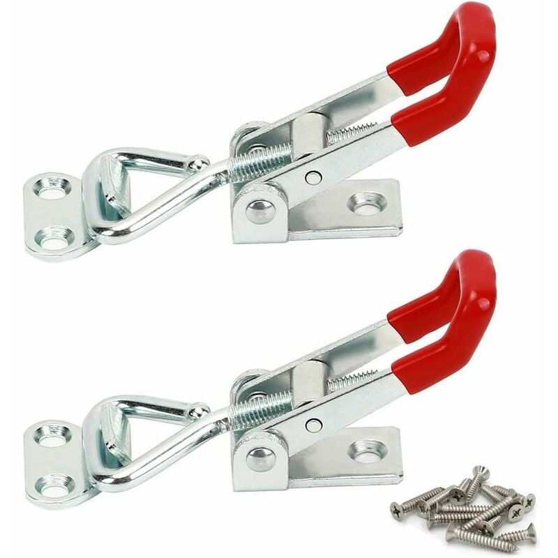 Robusto e antiruggine: il morsetto a levetta con serratura è realizzato in metallo zincato di alta qualità, resistente alla corrosione e alla ruggine. Adatto a diverse temperature ambiente interne o esterne. Distanza di installazione regolabile: la distanza di montaggio del morsetto a levetta è regolabile. Le viti possono essere regolate esattamente alla distanza richiesta, in modo da avere abbastanza spazio di manovra durante l'avvitamento del gancio. Elevata capacità portante: la capacità portante del chiavistello in metallo è fino a 150 kg, che può chiudere saldamente porte, armadi, scatole e alveari per aumentare la sicurezza Vantaggi: sfrutta il principio del punto morto meccanico a quattro bracci, può essere bloccato e aperto rapidamente, abbastanza flessibile. La base è rinforzata per una presa più stabile. Applicazione: perfetta per armadio, porta, scatola, borsa senza serratura o maniglia rotta, ottimo gadget per casa, ufficio, ristorante, fabbrica, ecc.