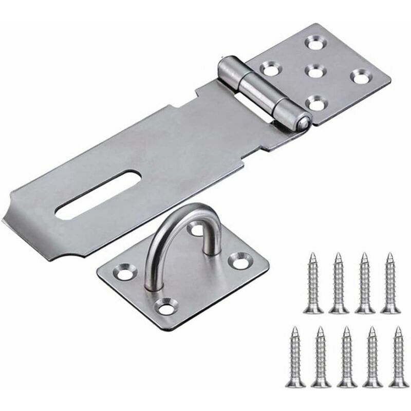 Robusto e durevole - La cerniera del lucchetto, realizzata in acciaio inossidabile di buona qualità, processo di trafilatura, impermeabile e antiruggine, resistente e affidabile, non facile da danneggiare e rompere, può essere utilizzata a lungo. 【Set di lucchetti Serratura della porta】 Riceverai 1 fermaglio, 1 graffa e 10 viti, che sono ampiamente utilizzati in garage, cucina, cortile, giardino, camera da letto, bagno e persino gabbie. 【Installazione semplice】 Il fermo della porta in acciaio inossidabile è facile da installare e rimuovere, adatto per fori da 5 mm, comodo per l'installazione a 180° e 90°, basta praticare i fori dove ne hai bisogno, quindi fissarli con le viti, risparmiando tempo e fatica.,【Ampia applicazione】 La chiusura a scatto in acciaio inossidabile è un strumento ideale per fissare mobili, sia pratico che resistente, adatto all'uso quotidiano, pratico per porte, armadi, finestre, cassetti, scatole di legno, ecc. 【Moraillo n e fiocco con viti】 Design ispessito