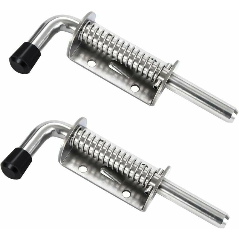 Materiale robusto: lo scrocco è realizzato in acciaio inossidabile 304, saldato con base rinforzata ispessita per resistenza e usura, può mantenere buone prestazioni anche in caso di maltempo. Sicurezza extra: molla dello scrocco caricata a molla utilizzata per bloccare, chiudere e fissare la porta, puoi facilmente aprire e chiudere il chiavistello, puoi rimanere chiuso quando serve. Fornisci maggiore sicurezza. Il pacchetto include: riceverai 2 chiusure a molla senza viti, lunghezza 128 mm, altezza 47 mm, diametro 10 mm, che possono soddisfare le tue esigenze quotidiane. Facile da installare: Usa le viti per installare la serratura della porta sulla porta o sulla finestra, può essere installata verticalmente o orizzontalmente, risparmiando tempo e fatica. Scegli dove vuoi installare e fai 4 fori in anticipo. Ampiamente usato: ideale per chiudere le porte, conservare le merci nei capannoni, mettere in sicurezza le porte dei garage e mettere in sicurezza il bestiame. Adatto per garage