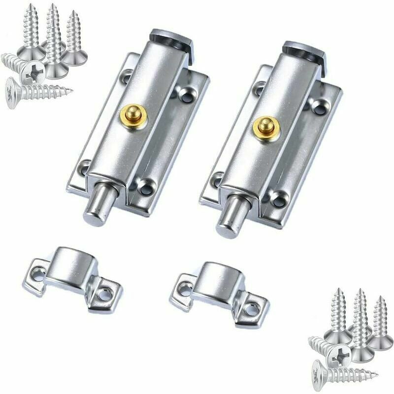 DESIGN A MOLLA - Blocco scorrevole in acciaio inossidabile, design solido del pulsante a molla, pulsante a molla in rame massiccio, recupero automatico dopo la pressione, non è richiesta alcuna operazione manuale. [MATERIALE] Realizzato in acciaio inossidabile di alta qualità, materiale resistente alla corrosione, antiruggine, ispessito, trattamento antiruggine sulla superficie, lunga durata, ghiera in acciaio inossidabile solido, durevole resistente all'usura, forte e durevole. [MULTIUSO] Le serrature per porte in acciaio inossidabile sono adatte a tutti i tipi di porte e finestre, ante di armadi, porte del bagno, serrature per bagni o servizi igienici, serrature per capannoni, mobili, armadi, serrature per animali domestici, ecc. sicurezza e privacy per la tua casa. [FACILE INSTALLAZIONE] Attacca il bullone scorrevole e il ricevitore alla finestra o alla porta serrando sei viti ed è pronto per l'uso e facile da installare. La serratura scorrevole viene fornita con viti. [QUANTITÀ]