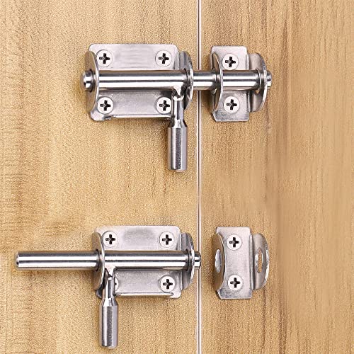 Bolt Chiusure In Acciaio, 6 Pezzi Inox Chiavistello Porta, Bullone Scorrevole Della Porta, Non Deformato, con 36 Pezzi Viti, per Bagno, Gabinetto, Capannone, Camera Da Letto, Finestre (Argento)