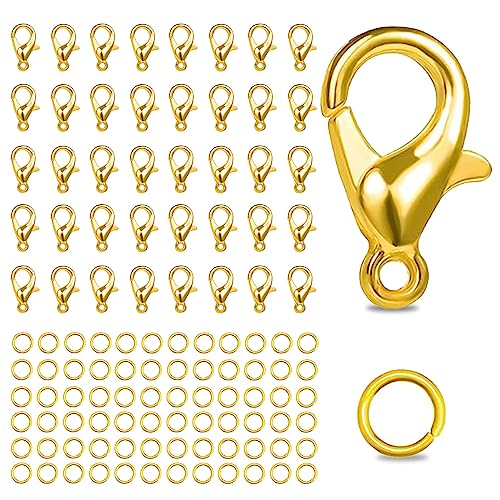 Chiusure Braccialetti,100 Pezzi Ganci Chiusure Moschettone,200 Pezzi Anellini Aperti,Chiusure per Collane,Gancetti per Collane,per Bigiotteria Fai da Te Creazione Collane Portachiavi (Oro)