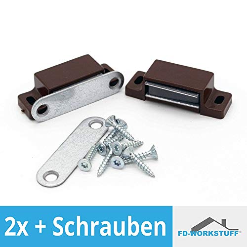 Chiusure Magnetiche │ marrone │ 2 pezzi │ 45 x 14 x 14 x 14 mm │ forza di tenuta: 6 kg │ incl. viti │ Magnete per Armadio │ Magnete per Porta │ by FD-Workstuff