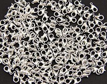 50 chiusure a moschettone, 7 x 14 mm, argentate, senza piombo e nichel, occhiello da 1,5 mm, chiusure in metallo per la creazione di gioielli, portachiavi, ciondoli, collane, bracciali