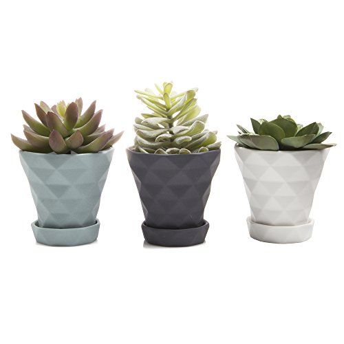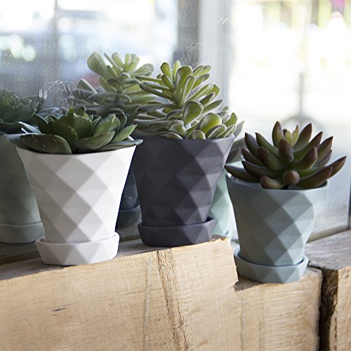 Chive Diamond Vaso rotondo per piante grasse e cactus, con foro di drenaggio e piattino, dalla finitura opaca, confezione da 3 vasi e piattini (in nero, bianco e verde)
