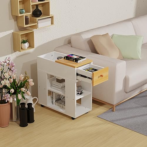 Chleby Stretto Comodino con presa Comodini con Ruote Comodino con 1 cassetto Bianco alto Comodino con ripiani