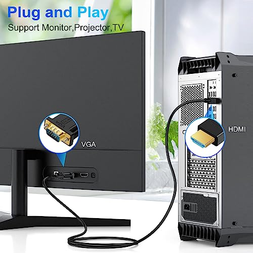 【Ampia compatibilità】Il cavo HDMI a VGA è ampiamente compatibile con dispositivi dotati di porta HDMI, come laptop, desktop, switch, PS3, media box, TV box, DVD, fotocamere, MacBook, e può essere collegato a dispositivi con porta VGA per la riproduzione, come televisori, TV ad alta definizione, monitor, proiettori.
