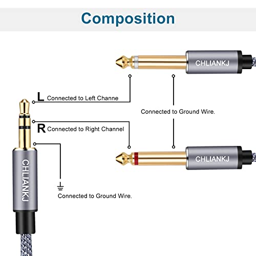 CHLIANKJ Cavo Aux 3,5mm a Doppio 6,35mm, Cavo splitter da 3,5 mm 1/8" TRS a Doppio 6,35 mm 1/4" TS Mono, Nylon Intrecciato Cavo Stereo per Smartphone, Tablet, Altoparlante, Amplificatore (1 m)