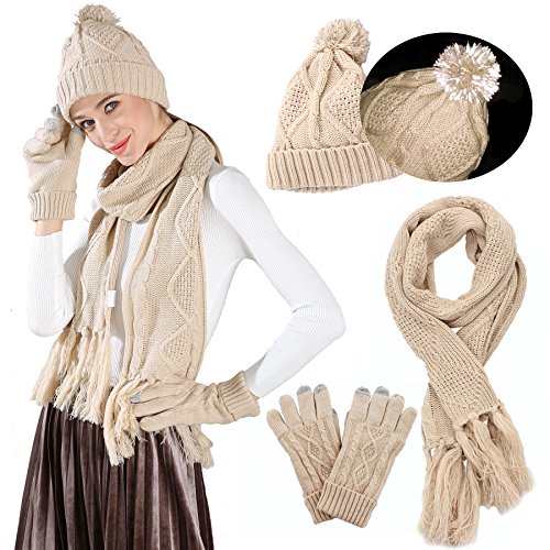 Chloria Set composto da berretto, sciarpa e guanti, unisex, motivo a trecce, sciarpa spessa, guanti, cappello, inverno, set regalo