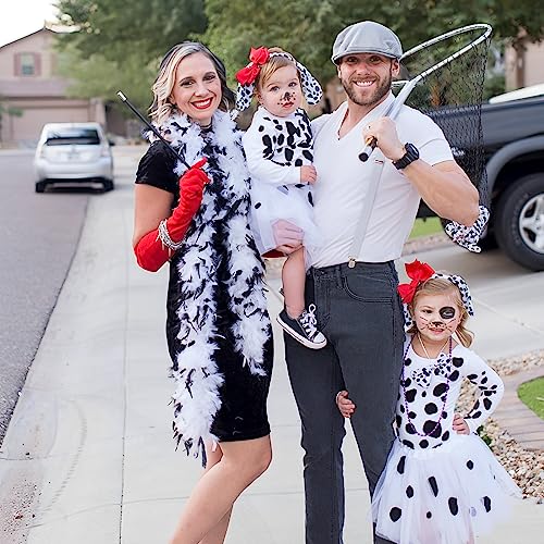 CHMMY Dalmata costume cruella Costume Bambini Dalmata Orecchie Fasce Coda Papillon Carta adesiva Gonna in tulle Costume dalmata Set Costume cosplay Halloween Donna Bambini