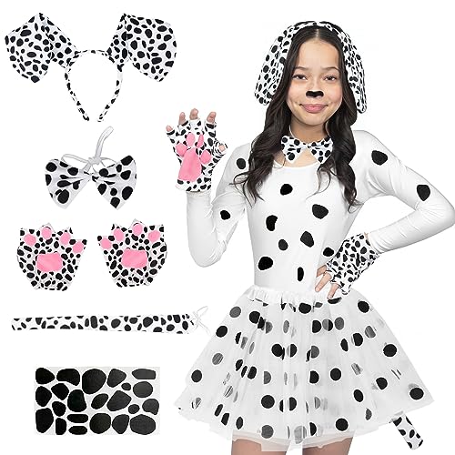 Set costumi dalmata: include 6 accessori per costumi dalmati, orecchie dalmate, fasce per la testa, fiocchi, code, guanti, adesivi e gonna in tulle. Soddisfa facilmente le tue esigenze di abbigliamento da festa e crea ricordi indimenticabili per te.