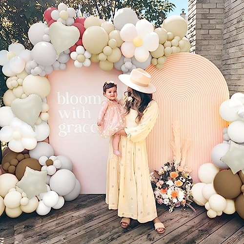 CHMMY Ghirlanda Palloncini Beige 124 Pezzi Ghirlanda Palloncini Bianco Sabbia Set con palloncini compleanno Albicocca, Marrone, Rosa Palloncini per Matrimonio, Baby Shower, Festa di Fidanzamento