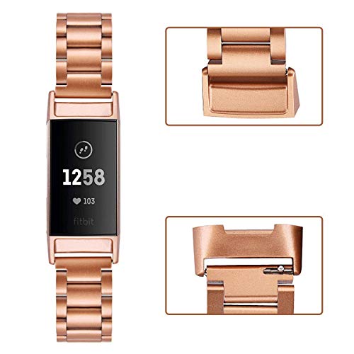 Chofit Cinturino in metallo Compatibile con Fitbit Charge 3 Swimproof fasce, in acciaio INOX da polsino Compatibile con Fitbit Charge 3 speciale edizione orologio intelligente (Oro rosa)