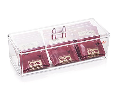 Dimensione e composizione del prodotto: Ogni organizzatore è impilabile e ha un coperchio in alto.Dimensione della scatola (circa): 9,06 "L x 3,58" L x 2,48 "H;