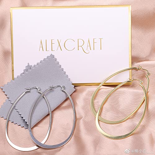 ASH'S CHOICE Orecchini a cerchio in oro da donna, S925 Stering argento placcato oro 14 K, orecchini a goccia ovali ipoallergenici, grandi orecchini a tinta unita, per donne e ragazze, Oro giallo