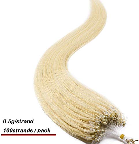 Rich Choices 60cm Extension Capelli Veri Anelli 100 Ciocche Microring Hair Extension Capelli Lisci Naturali Peso 50g, 613 Biondo Chiarissimo