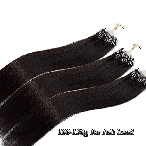 Rich Choices Extension Capelli Veri Anelli 100 Ciocche #1B Nero Naturale Microring Hair Extension Capelli Lisci Naturali, Pesa 50g Lunga 45cm